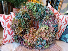 Material: Heu, Wickeldraht, Beeren, Fruchtstände, Hortensien, Strohrömer